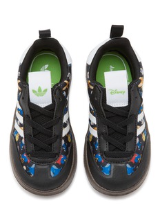 Unleash your child's playful spirit with these eye-catching adidas Superstar sneakers adorned with a vibrant character print. These fun, energetic designs are set against a classic black background with iconic white stripes, making them a standout choice for any young trendsetter.