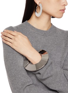 Step into the future of fashion with Alaïa's strikingly modern bracelet. Crafted with a sleek, mirrored finish, this piece captures the essence of minimalist elegance with its bold, circular design. Perfect for adding a touch of avant-garde glamour to any ensemble.