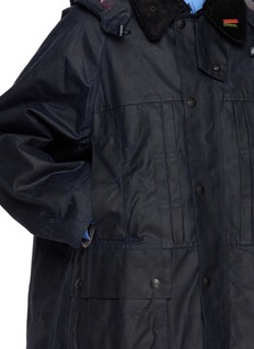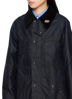 Fusing Barbour’s countryside heritage with Levi’s Californian spirit, this oversized Bedale waxed jacket channels a rugged yet refined attitude. Crafted from waxed cotton for a durable patina, it features pleated detailing, Levi’s signature arcuate stitching, and dual branding. The detachable hood adds versatility for transitional weather styling.