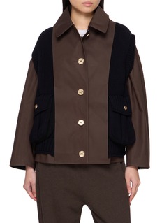 This innovative short coat from the Barrie x Mackintosh collaboration redefines outerwear with its bold, inverted construction. Crafted from waterproof coated cotton, it flips traditional design by showcasing the hidden facing and luxurious cashmere lining, inspired by Barrie’s iconic waistcoats. The result is a striking trompe l'oeil effect, blending functional protection with an avant-garde flair.