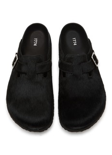 Elevate your comfort with the BIRKENSTOCK 1774 mules. Crafted from premium black leather with a soft hair finish, these clogs combine a minimalist aesthetic with luxurious comfort, featuring a single buckle adjustment for a tailored fit.