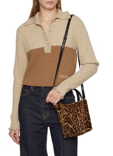 Chloé's iconic bucket bag receives a sophisticated update in the softest, most sumptuous shearling with a leopard print. The sculptural silhouette is adorned with signature gold-tone hardware and charming charm details, embodying understated luxury.
