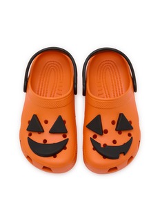 Step into the spooky season with flair in these vibrant orange Crocs, enhanced with a charming pumpkin charm. Ideal for those who love to celebrate Halloween all year round, these clogs are designed for comfort and style, featuring a lightweight build that's perfect for festive gatherings or casual wear.