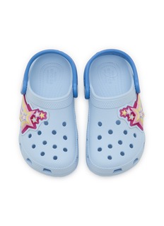 Propel your little one into a universe of fun and comfort with these stellar-themed Crocs. Featuring a dazzling star charm with vibrant trails, these light blue clogs are perfect for young explorers who dream big. Lightweight and versatile, they ensure comfort and style on every little adventure.