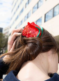Brighten up your look with this claw clip from EAT MY SOCKS, boasting a design of a budding rose. A true burst of colour and joy, this accessory is the perfect way to keep your style bold and fun.