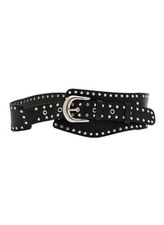 Channelling a rebellious spirit, this wide belt toughens any look with its polished studs and curved silver-tone buckle. Whether slung low over denim or cinched at the waist of a minimalist dress, it adds a statement-making contrast that evokes modern Western allure.