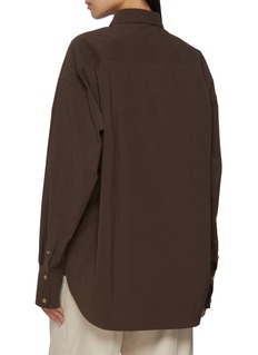 GIA STUDIOS’ Aeron shirt embodies quiet confidence through precision and proportion. Crafted from crisp cotton poplin, it features an oversized cut with a structured point collar and dropped shoulders. A wardrobe essential that shifts seamlessly from minimal workwear to refined casual styling.
