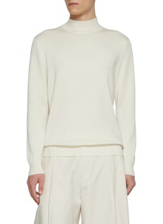 J∞QUALITY's pullover exemplifies timeless style with its mock neck and minimalist style. Shaded in a soothing white and crafted from a luxurious blend of cashmere and silk, this piece serves as the perfect elevation for a refined modern wardrobe.