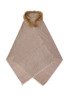 An ode to refined craftsmanship, Lane’s shawl features a subtle herringbone weave enriched with gold-toned bead accents. The design is finished with a luxuriously soft fox fur collar and lightly fringed hem, bringing warmth and opulence to cold-weather dressing.