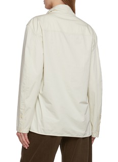 Balancing ease and structure, this LEMAIRE vareuse top is crafted from supple cotton poplin. Its draped collar and adjustable ties frame the neckline with understated volume, while the relaxed silhouette and fluid texture evoke the brand’s utilitarian refinement. Perfect for everyday layering.