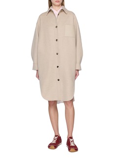 LOEWE's shacket, crafted in an oversized silhouette and classic button-front design, offers a relaxed yet refined aesthetic. A versatile piece that elevates casual ensembles with understated luxury and timeless appeal.