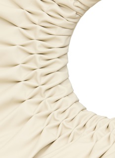 Discover the Smock chair, where its unique structure features armrests reminiscent of a bamboo bag and a shell that echoes a baseball mitt, creating a cosy, nest-like seat. The side embroidery in a smocking stitch adds contemporary elegance and lightness, transforming this chair into a sophisticated fashion-inspired statement piece.
