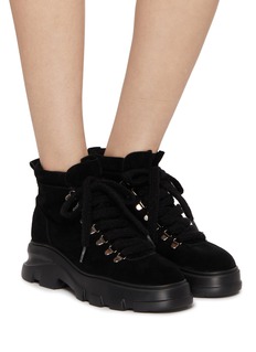 A bold update to utilitarian footwear, Pedder Red's Willen boots arrive in black suede for a sleek, urban finish. The rugged lace-up construction with metal hooks is balanced by a chunky sole, making them a versatile staple to ground both casual denim and polished tailoring.