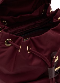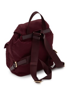 A contemporary revival of a Prada icon, this small Re-Edition 1978 backpack fuses heritage charm with modern sustainability. Crafted from regenerated Re-Nylon, it balances practicality with elegance through structured pockets, leather trims, and signature gold hardware — perfect for daily city wear or travel.