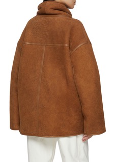 Crafted from supple lambskin suede, this reversible jacket by R2W balances utilitarian ease with tactile luxury. Featuring a smooth suede side and a plush shearling reverse, it offers versatile styling—perfect for transitioning between rugged daytime edits and refined evening layering.