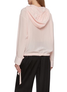Softly ethereal, this hooded top by Sharon Wauchob reimagines casual codes through a lens of poetic femininity. Detailed with a tie-neck and gathered hem, its fluid transparency reveals quiet allure—pair effortlessly with tailored trousers or flowing skirts for modern sophistication.