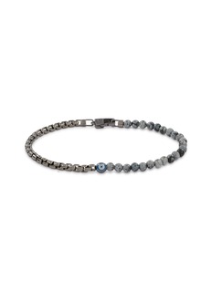 Embrace a blend of style and symbolism with the Tateossian Guardian Beaded Bracelet. This distinctive piece combines textured grey beads with a sleek sterling silver chain, accented by an eye-catching evil eye charm for protection. Ideal for the modern man who values both fashion and meaningful elements in his accessories.