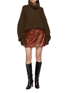 Rendered in supple lambskin, this Ulla Johnson mini skirt embodies refined femininity with a modern twist. Detailed with perforated trims, flap pockets, and a removable tie belt that knots into a bow, its rich brown tone adds a timeless polish to everyday styling.