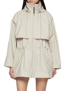 Designed for versatile layering, the Alyssa Rain Jacket pairs sleek functionality with a refined matte finish. Its oversized silhouette is detailed with an adjustable waist and hood, sealed seams for protection, and back vents for breathability — a contemporary essential for unpredictable weather.