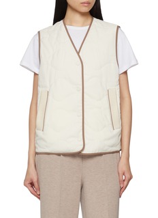 A study in contrasts, this reversible gilet from Varley transforms with ease between polished and relaxed moods. One side reveals quilted flannel accented with rib-knit pockets and tonal binding, while the reverse features smooth twill with a subtle sheen. Perfect for mid-season layering or travel versatility.